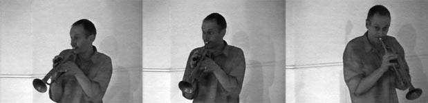 My research into the experience of trumpet performance also showed that different modes and qualities of movement are vital ingredients in the live performances of trumpet players. At certain times some of the trumpeters ‘danced’ in a performative mode, and at other times the only discernible movements were those associated with the rigours of musical production. Brass, and particularly trumpet performance, exhibits a sparse gestural repertory relative to other instrumental performance traditions, where it may be clearly observed whether or not the movements are extraneous to purely instrumental technique. The range of such extraneous movements is limited by the technical demands. To be a trumpeter is to restrict, or form the array of choices in a particular way. Sometimes these may be musical choices made for a lifetime. Even within the realm of purely musical performance, musicians exercise a complex variety of choices that are not restricted to customary ‘musical’ options, such as note choice. Within a collaborative realm, involving, for example, other musicians and dancers, the options become qualitatively transformed and note choice rapidly becomes a minor set of options in the landscape of choices. The focus shifts now occur across a differently defined landscape. As we map each performance through observable experience, surprising correspondences indicate an emerging aesthetic commonality. A new ‘zone of proximal comfort’ is created with each performance which defines the boundary of the collaboration and allows for the fascinating rhythms of choice to emerge. The surprises are appealing as they reveal the conscious experience of each performer.